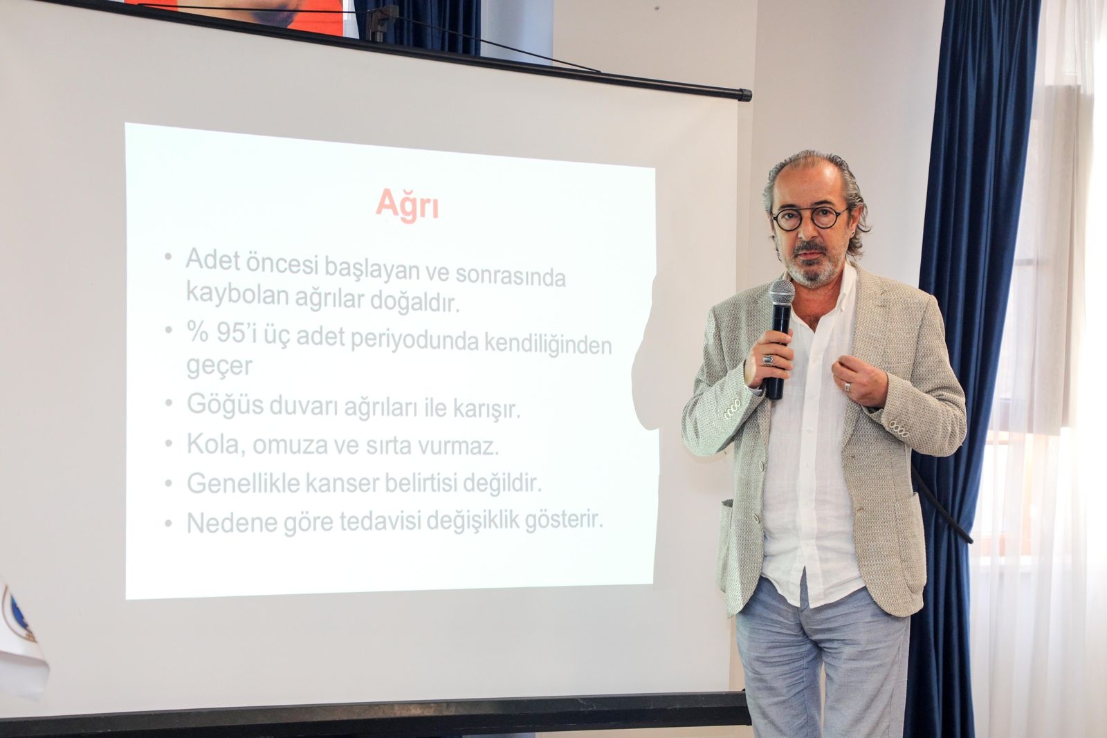 Op. Dr. Erol Aksaz ise, meme hastalıklarının ve kanserinin belirtilerini örneklerle anlattı. Her 8 kadından 1’inin meme kanserine yakalandığının altını çizen Aksaz, kanserin erken evrede fark edilmesinin önemini vurgulayayarak, “Erken teşhis edilirse hayatta kalma şansı artıyor, meme kaybı riski azalıyor” dedi. Her ağrının bir kanser bulgusu olmadığını da belirten Aksaz, “Mamografi çektirmek acısız bir işlemdir ve zararlı değildir. Ailede kanser geçirmiş bir kişi var ise, gen testinin yapılması gerekmektedir. En iyisi de her yıl düzenli kontrollerinizi yaptırın” diye konuştu.